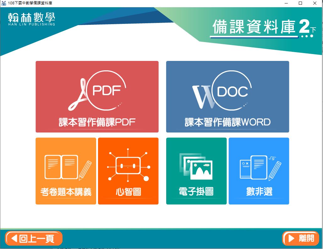108學年下學期 國中 翰林版 數學備課資料庫 2-3年級(含課本、卷類資源、備課用書、習作含解答、教學輔助資源)教學光碟DVD版