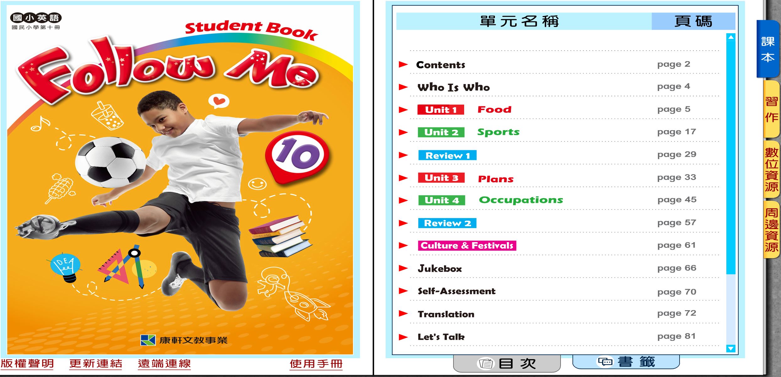 111學年下學期 國小 康軒版 英語電子書 Follow Me 第10冊(含課本、習作含解答) 教學光碟