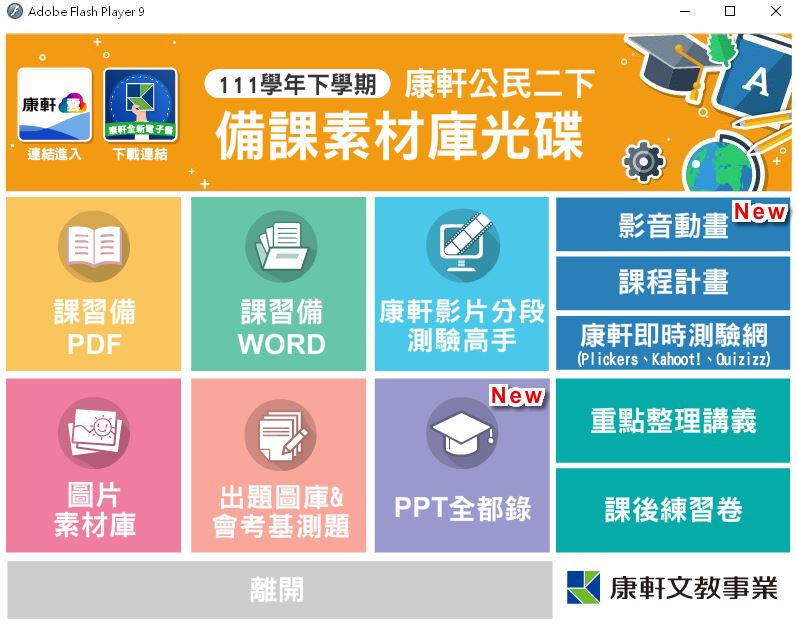 111學年下學期 國中 康軒版 公民備課資料庫 2年級(含課本、卷類資源、備課用書、習作含解答、教學輔助資源)教學光碟