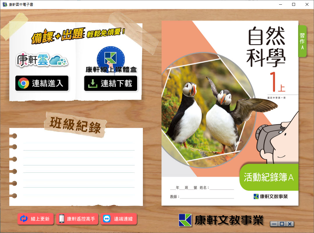 112學年上學期 國中 康軒版 自然 活動記錄簿A 電子書 1年級 教學光碟