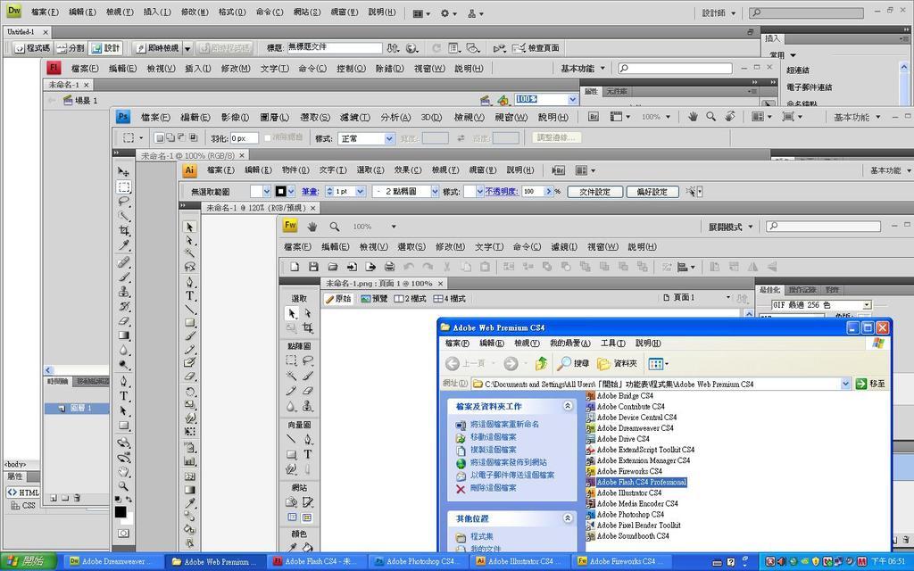 內含PhotoshopCS4+DreamweaverCS4+IllustratorCS4+Acrobat9Pro+FireworksCS4等等軟體